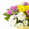 Букет с хризантемами и герберами оказался очень красивый! Цветы свежие ! Спасибо !